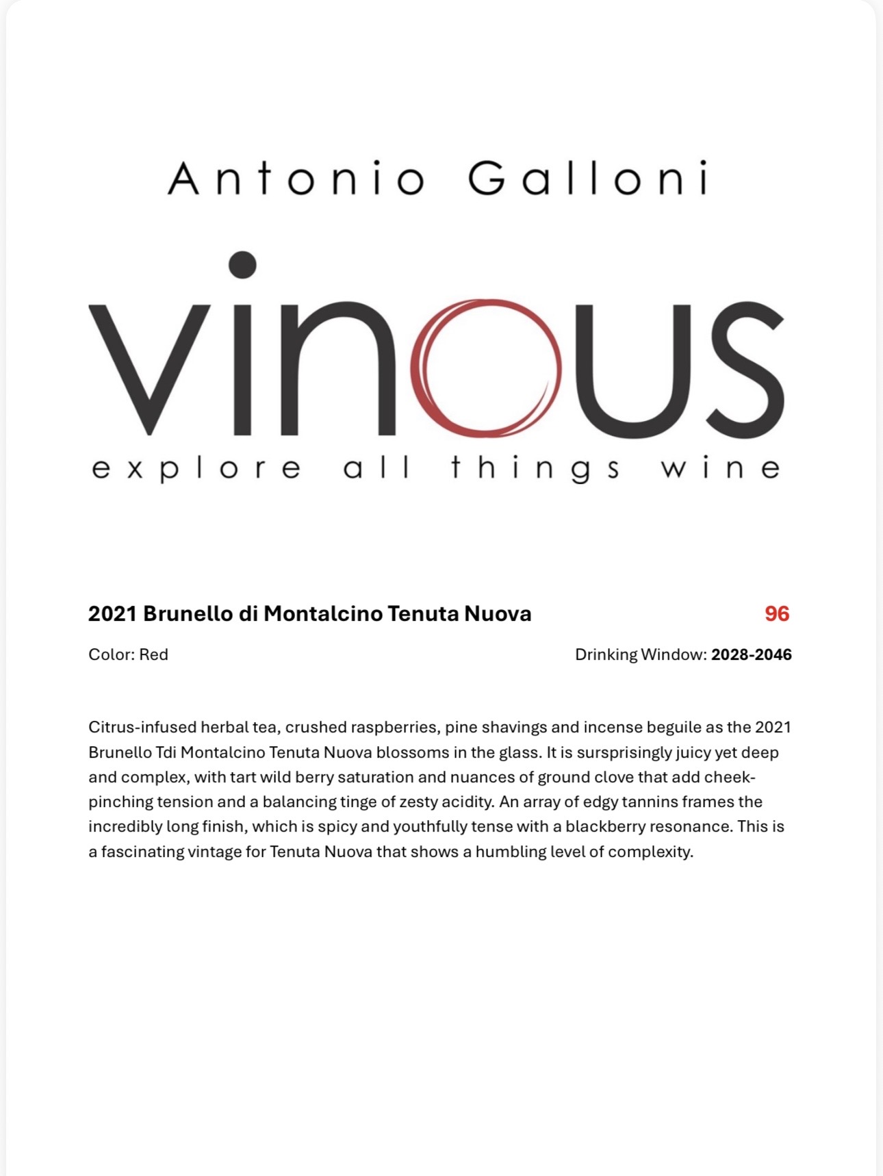 BRUNELLO, TENUTA NUOVA, GIOVANNI NERI 2018